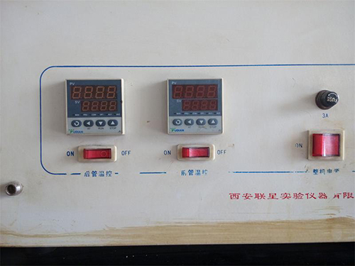 4.開啟加熱器開關(guān),順時(shí)針調(diào)節(jié)電壓調(diào)整旋扭,電爐開始加溫同時(shí)電壓表指針相應(yīng)隨加熱器電壓的變化。
