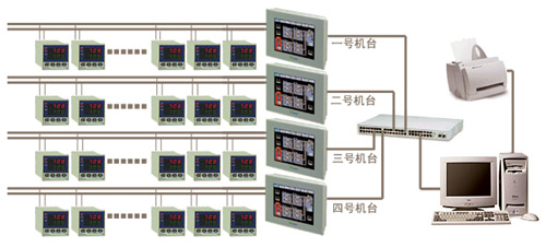 翔鷺滌綸紡纖HDT-3T機(jī)臺(tái)現(xiàn)場(chǎng)總線型溫控系統(tǒng)采用AIBUS現(xiàn)場(chǎng)總線型總體設(shè)計(jì),以AI-2000工業(yè)級(jí)觸摸屏電腦作為上位機(jī),多臺(tái)AI調(diào)節(jié)器通過(guò)AIBUS通訊協(xié)議現(xiàn)場(chǎng)聯(lián)接,觸摸屏電腦直接與AI調(diào)節(jié)器通過(guò)RS-485串行通訊實(shí)現(xiàn)90個(gè)通道溫度集中監(jiān)控。AI調(diào)節(jié)器上的所有參數(shù)可以在觸摸屏中顯示,也可用觸摸屏電腦設(shè)定下載,數(shù)據(jù)顯示刷新率高,便于實(shí)時(shí)監(jiān)控,溫度控制在±0.1℃。本系統(tǒng)同時(shí)監(jiān)控四條拉絲生產(chǎn)線。